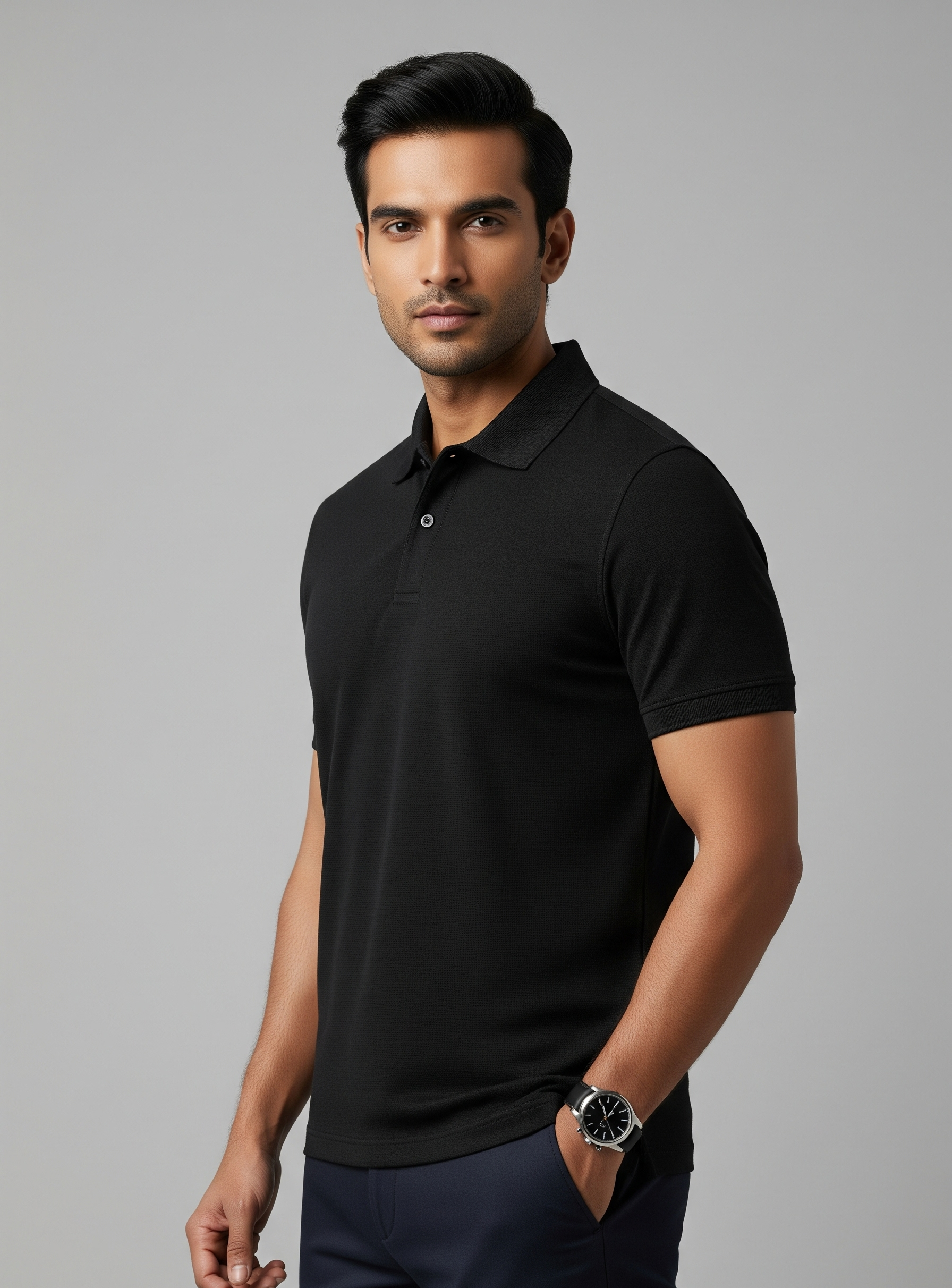 At Wearcrafted, we believe in perfecting the icons. The Iconic Pique Polo in Essential Black is the definitive statement of sharp, effortless style—a must-have for every man.