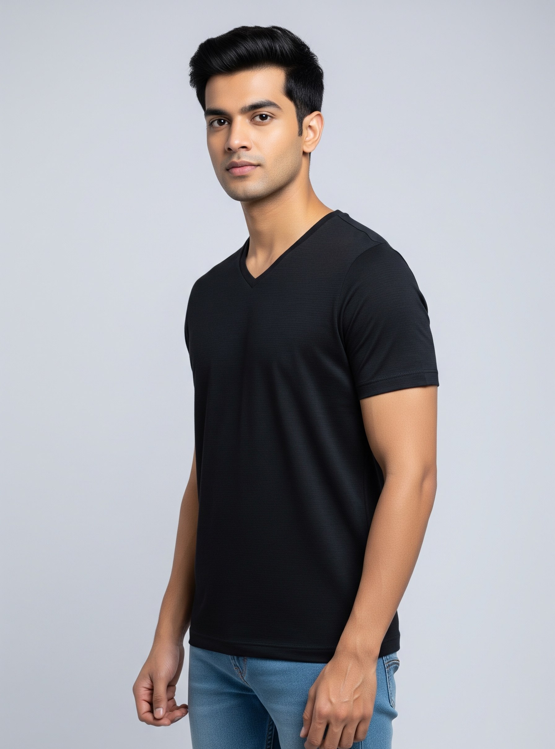 At Wearcrafted, we believe in perfecting the most powerful pieces in your wardrobe. Our Iconic V-Neck Tee in Essential Black is the ultimate staple, combining a modern, flattering cut with the most versatile color of all.