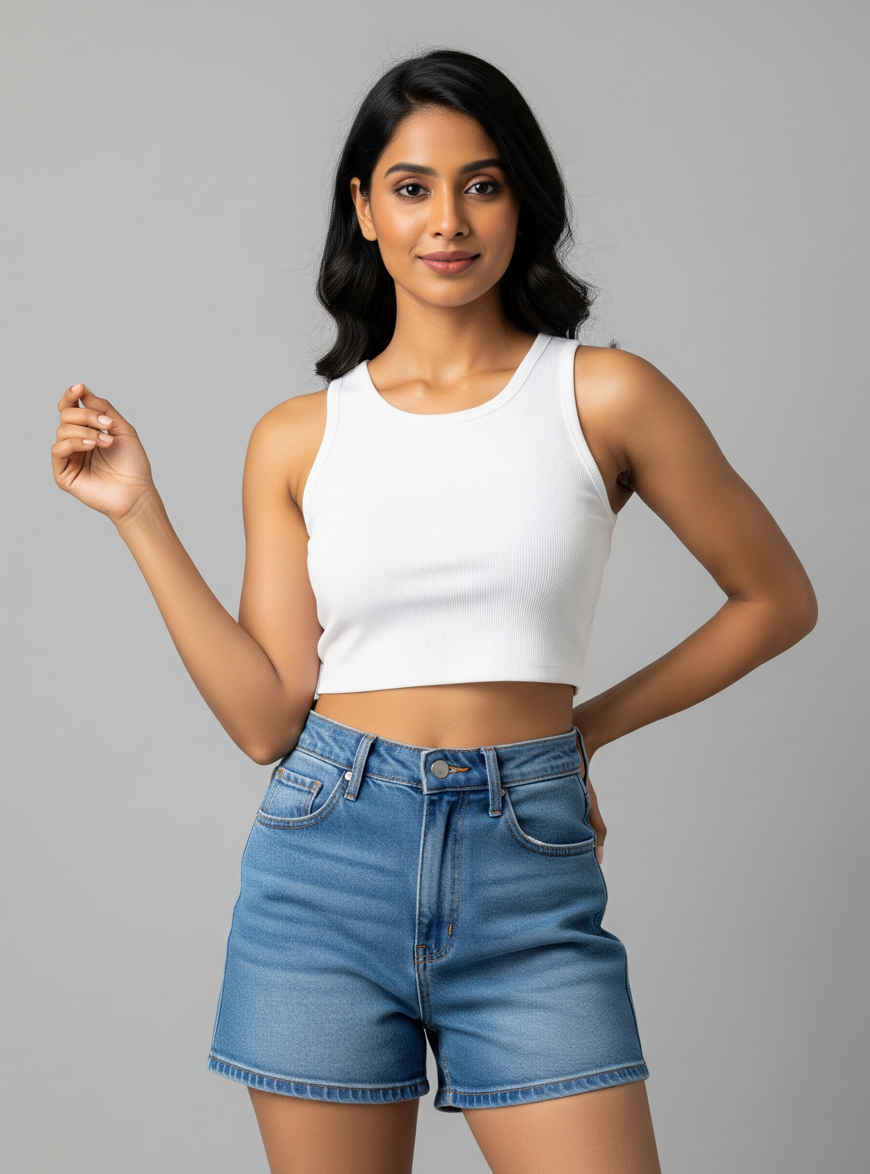 The crisp white hue is a timeless and versatile color that provides a clean slate for any outfit. Its modern cropped length and classic tank top cut make it a perfect piece for a hot summer day or as a base for layering. Pair it with high-waisted shorts, your favorite denim, or a flowing skirt for a look that is always fresh and chic.