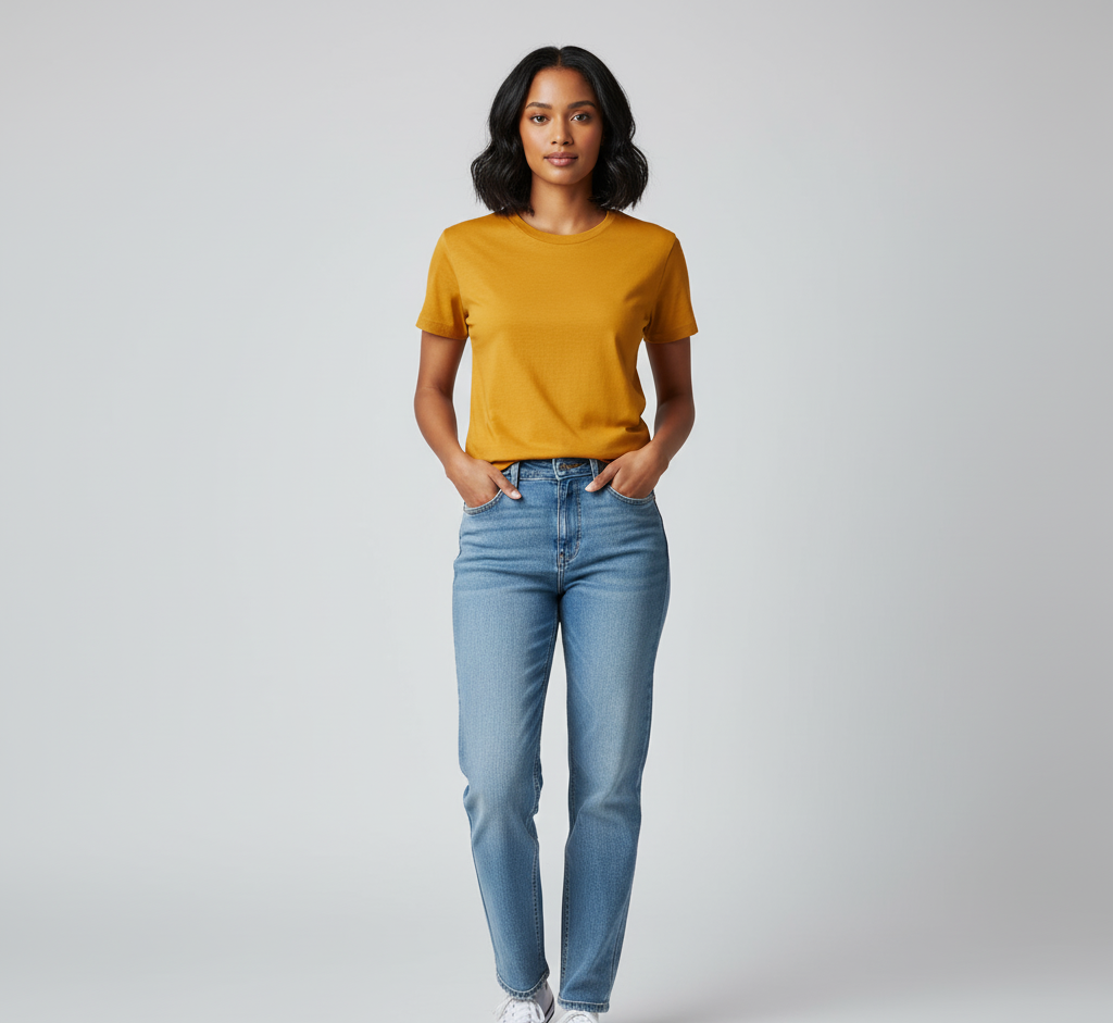A great outfit starts with a great foundation. Our Classic T-Shirt in a rich mustard yellow is crafted from soft, breathable cotton for all-day comfort. Its relaxed fit and versatile design make it the perfect staple for any wardrobe, easily pairing with your favorite jeans, skirts, or trousers.